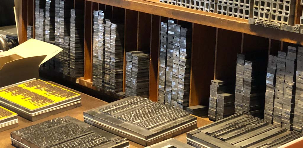 Courses in manual typesetting with lead types are offered in the department's own training print shop.